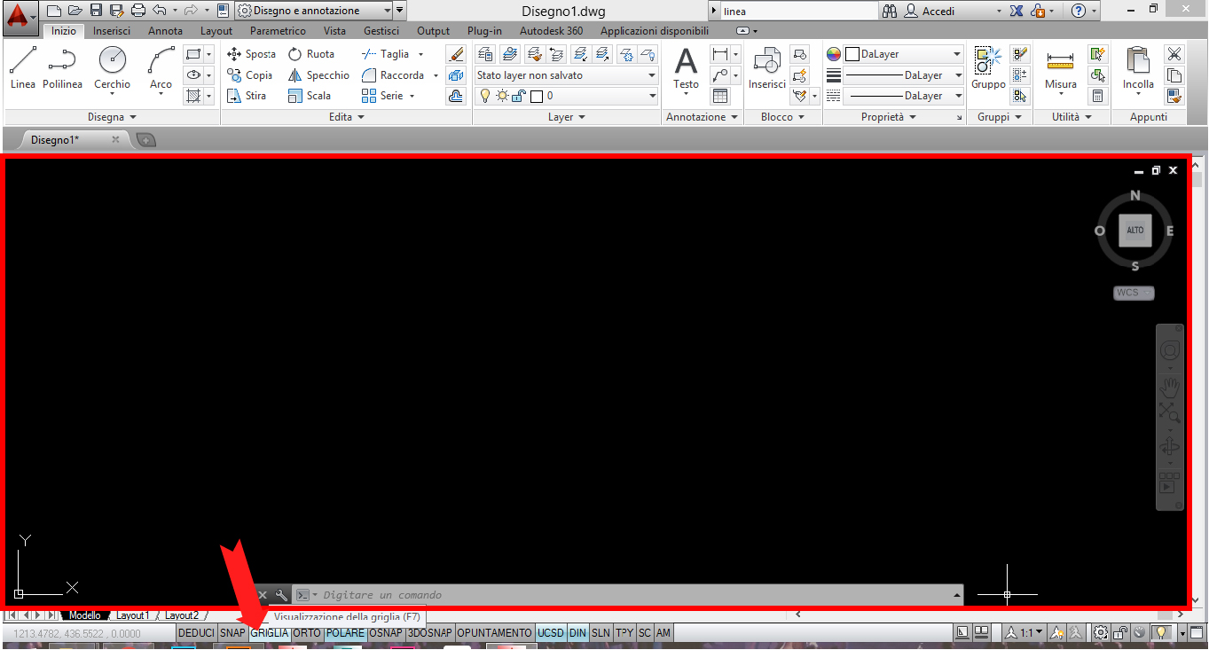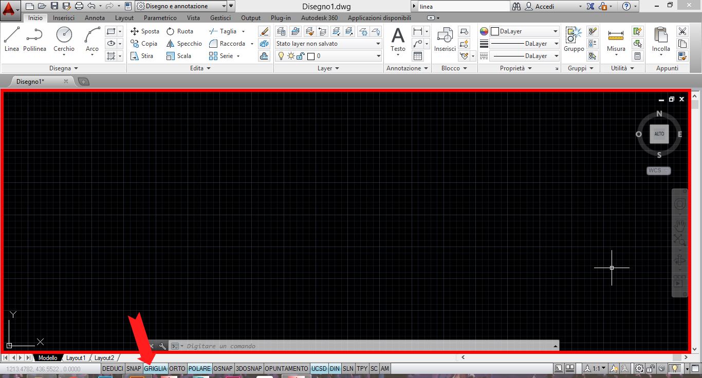 Se si aziona il comando Griglia (o Grid), appare o scompare la griglia di riferimento.
