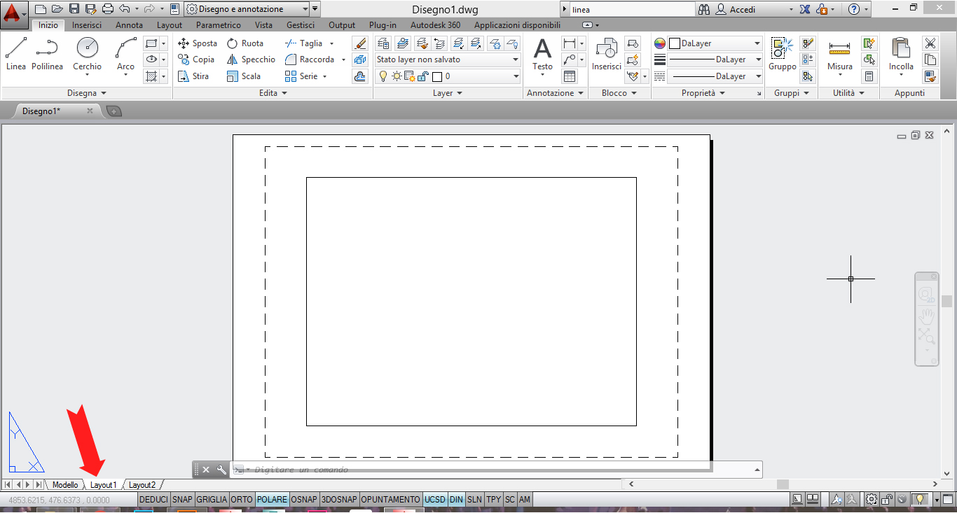 Layout invece equivale all’impaginazione del disegno da stampare: Il foglio di carta.