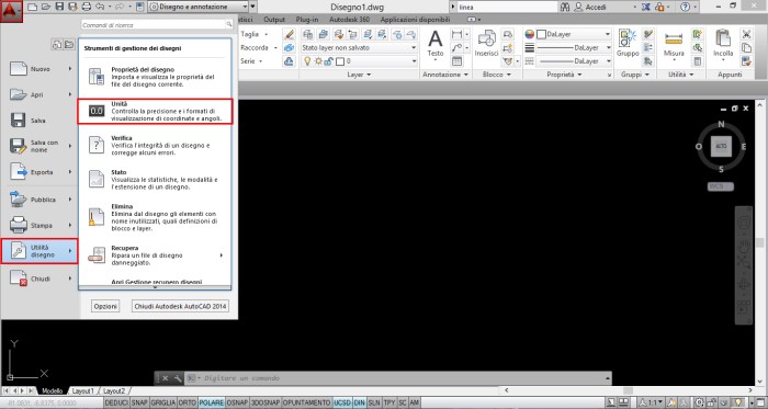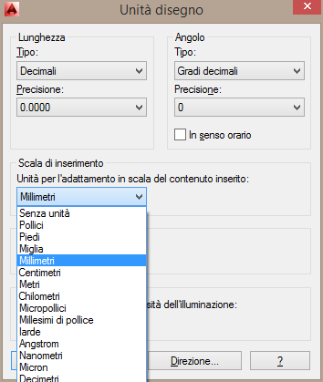 Solitamento l’unità di misura del disegno è impostata su mm. Per modificarla: